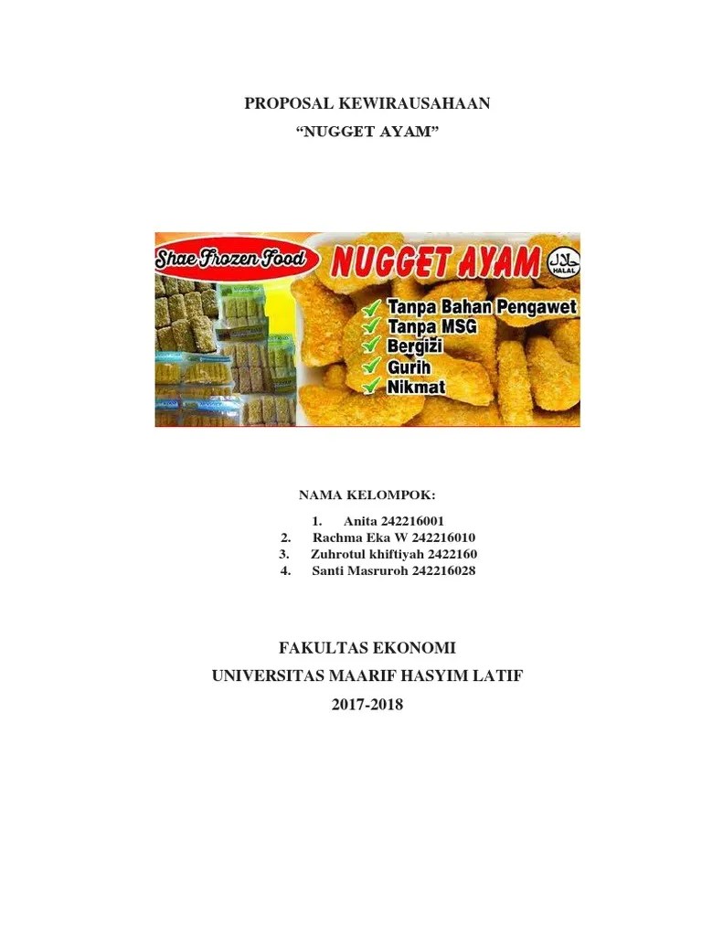 Contoh Proposal Pkm Kewirausahaan Nugget / Pkm Kewirausahaan Pengolahan Nugget Ta / Silahkan anda klik link tentang kumpulan contoh proposal kewirausahaan nugget tempe file yang ada di bawah ini.. Latar belakang masalah nugget adalah suatu bentuk produk olahan daging . Contoh proposal kewirausahaan pisang coklat/ pisang keju/ pisang kacang. Silahkan anda klik link tentang kumpulan contoh proposal kewirausahaan nugget tempe file yang ada di bawah ini. Proposal program kreativitas mahasiswa bageter (banana nugget character) bidang kegiatan: Proposal program kreatifitas mahasiswa a.